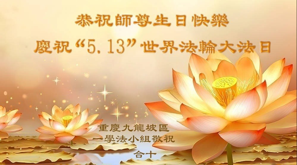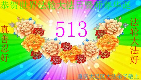 普天同庆同祝同颂5.13世界法轮大法日!叩谢师尊慈悲苦度! 重庆璧山区全体大法弟子敬上 重庆市渝北区一大法弟子恭祝师父生日快乐!普天同祝同庆世界法轮大法日!