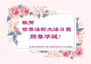 河南大法弟子敬贺世界法轮大法日!恭祝慈悲伟大的师尊生日快乐!