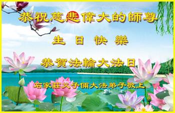 师父虽然在国外,弟子切身体会到了师父就在身边!在修炼的道路上,师父时时刻刻保护着弟子的安全,帮助弟子化解魔难!谢谢慈悲伟大的师父多次救命之恩!谢谢师父无微不至的关怀和帮助!弟子只有精進实修,多讲真相救人,以报师恩。 河北省石家庄市高邑县一夫妻大法弟子恭祝师尊生日快乐!