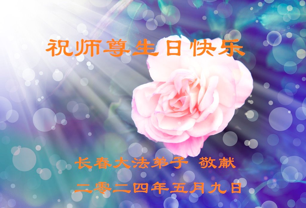 【明慧网二零二四年五月十四日】 吉林省长春一老年大法弟子恭祝师尊生日快乐!恭祝世界法轮大法日!