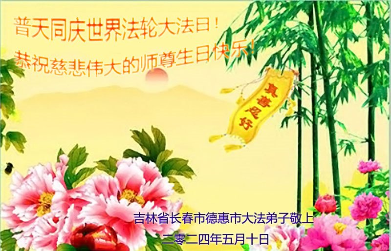 吉林省长春市德惠市大法弟子敬贺世界法轮大法日!恭祝慈悲伟大师尊华诞!
