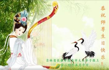 恭祝师尊生日快乐!恭祝法轮大法洪传32周年!感谢师尊的慈悲救度,盼望师尊早日回家乡。 长春一汽大法弟子 吉林长春大法弟子恭祝师尊生日快乐!