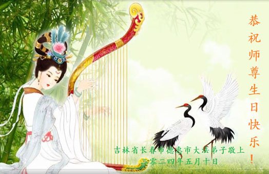 祝师父生日快乐!在这普天同庆的日子里,我们感恩师尊的慈悲救度!感恩师尊的慈悲点化和一路保护!弟子唯有做好三件事,努力精進。惟愿师尊笑! 吉林省长春市德惠市大法弟子敬贺世界法轮大法日!恭祝慈悲伟大师尊华诞!