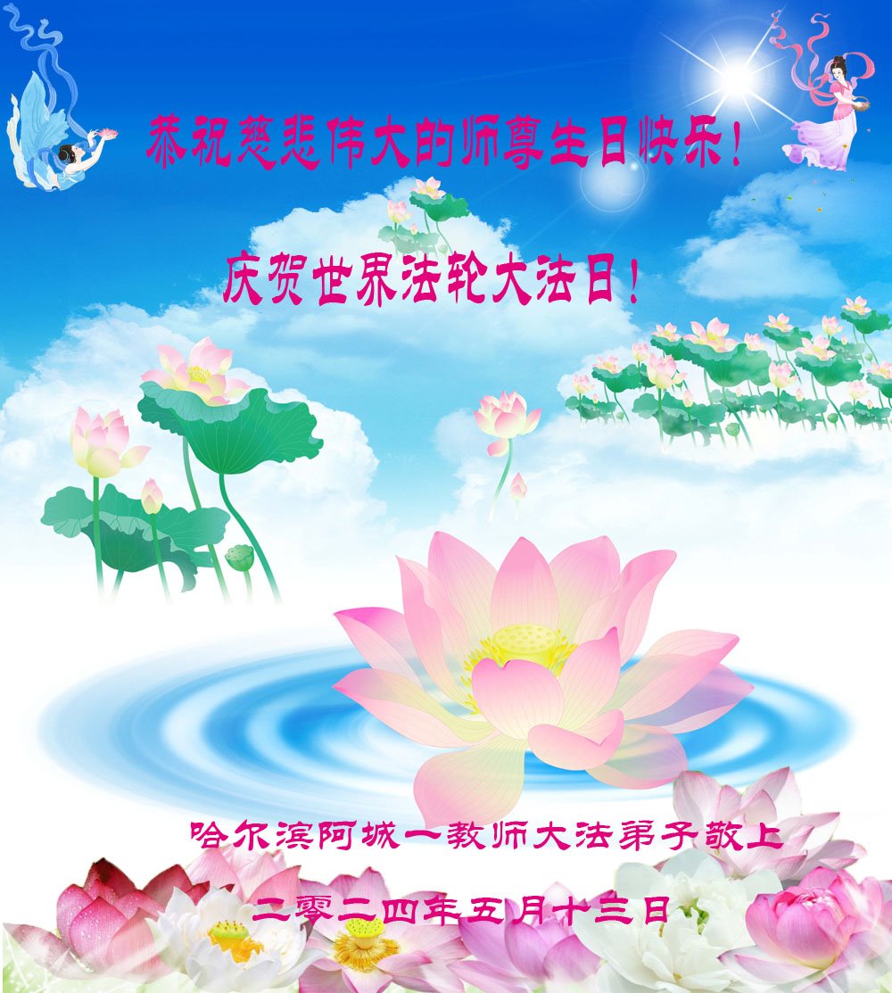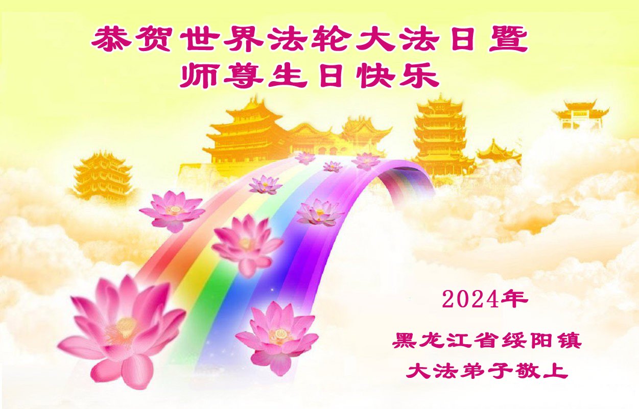 黑龙江双鸭山市技术大法弟子敬上 二零二四年五月九日 黑龙江省绥阳镇大法弟子恭贺世界法轮大法日暨师尊生日快乐!