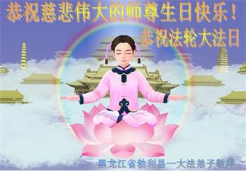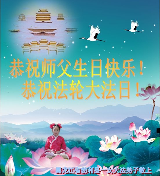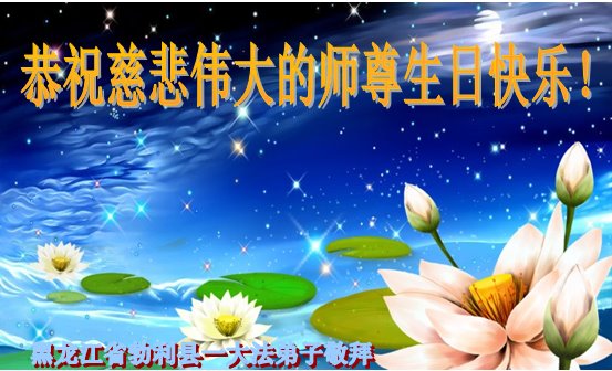 恭祝师尊生日快乐!感恩师尊慈悲苦度。 黑龙江鹤岗市大法弟子恭祝师父生日快乐!庆祝世界法轮大法日!