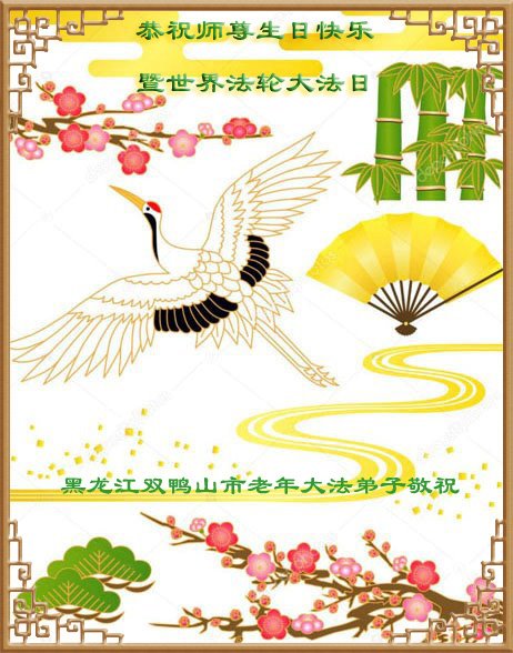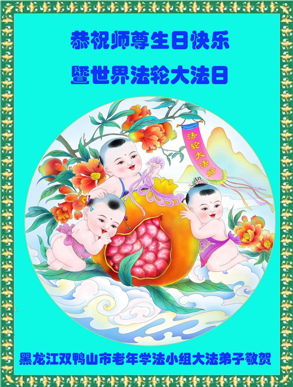 恭贺法轮大法洪传三十二周年! 黑龙江省鹤岗市大法弟子敬上 黑龙江省双鸭山市老年学法小组大法弟子恭祝师尊生日快乐!