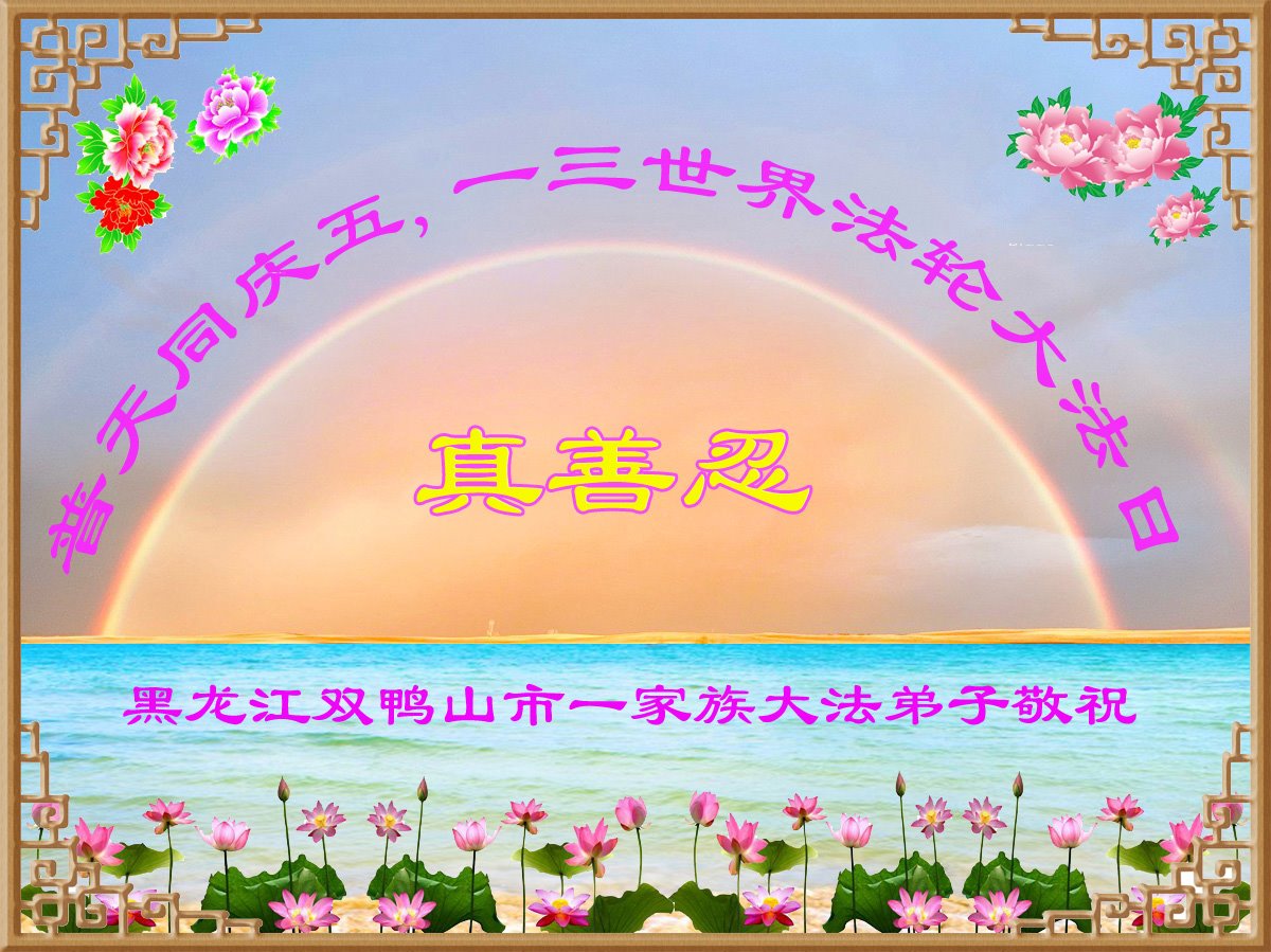 恭祝伟大恩师生日快乐!普天同庆世界法轮大法日! 师父您辛苦了!世界需要真善忍!永远流传万世! 黑龙江省勃利县一大法弟子和全家人叩拜师尊 黑龙江哈尔滨阿城一教师大法弟子恭祝慈悲伟大的师尊生日快乐!