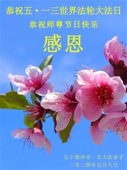 【明慧网二零二四年五月十四日】 辽宁锦州一名农村大法弟子恭祝五·一三世界法轮大法日!恭祝师父节日快乐!