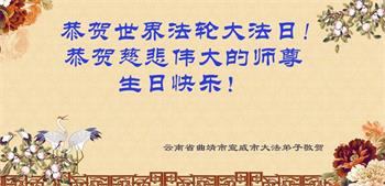 【明慧网二零二四年五月十四日】 云南省曲靖市全体大法弟子恭祝慈悲伟大的师父生日快乐!