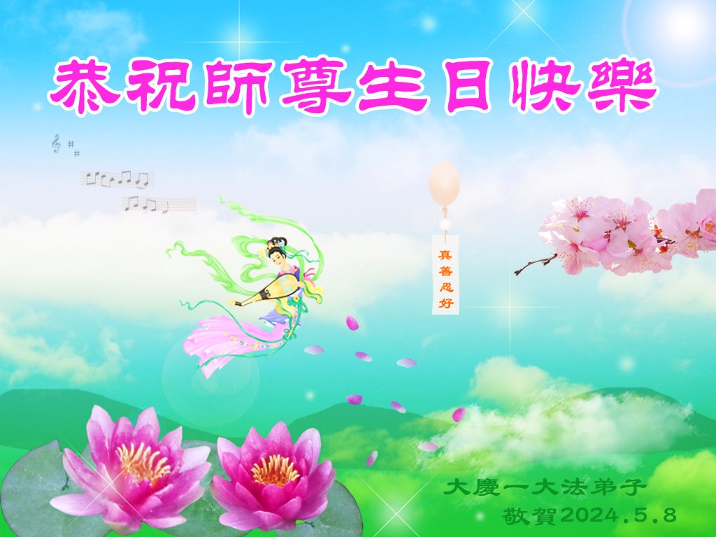 【明慧网二零二四年五月十四日】 黑龙江省大庆市龙凤地区一学法小组大法弟子恭祝慈悲伟大的师尊生日快乐!