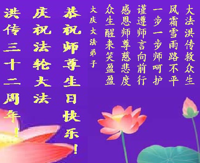 黑龙江大庆一大法弟子恭祝师父生日快乐!