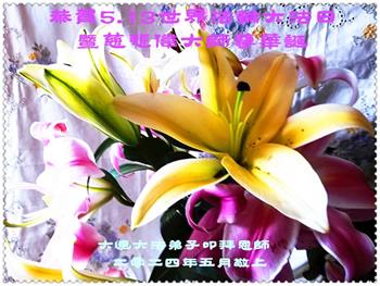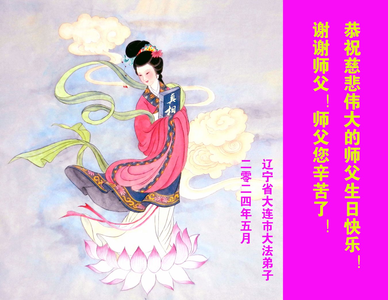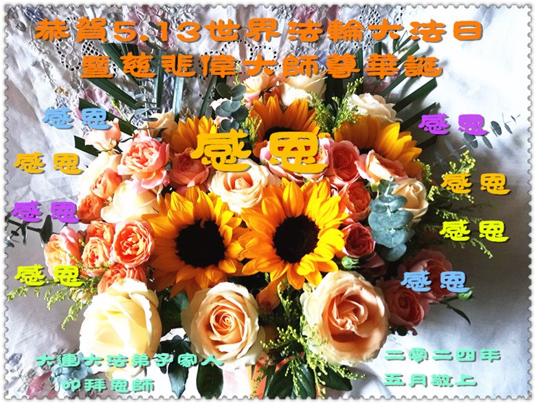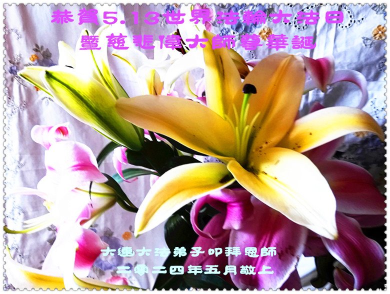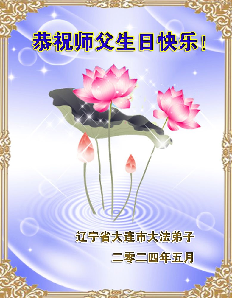 【明慧网二零二四年五月十四日】 辽宁省大连市金普新区一学法小组大法弟子恭祝慈悲伟大的师尊生日快乐!