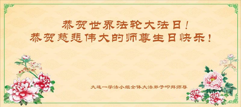 感恩师尊慈悲救度!弟子一定勇猛精進,做好三件事,兑现誓约,跟师尊回家。 辽宁省大连一学法小组全体大法弟子恭祝慈悲伟大的师尊生日快乐!