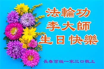 普天同庆法轮大法洪传世界三十二周年! 郑州市一大法弟子家人恭贺 吉林省长春百姓一家三口恭祝法轮功李大师生日快乐!
