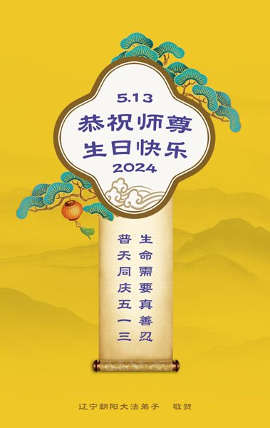 【明慧网二零二四年五月十四日】 辽宁省朝阳北票市大法弟子恭祝慈悲伟大的师尊生日快乐!