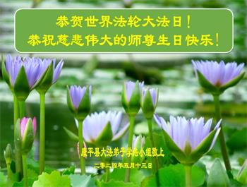 【明慧网二零二四年五月十四日】 辽宁省沈阳市大法弟子恭祝师尊华诞!庆祝5.13世界法轮大法日!