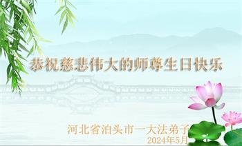 河北省沧州市泊头市一大法弟子恭祝慈悲伟大的师尊生日快乐!感恩师尊慈悲苦度!