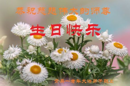 山东省青岛一老年大法弟子恭祝慈悲伟大的师尊生日快乐!