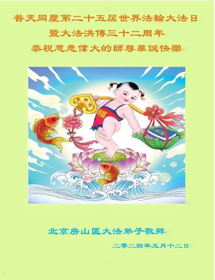 【明慧网二零二四年五月十四日】 全体北京大法弟子敬贺世界法轮大法日!敬祝师尊生日快乐!