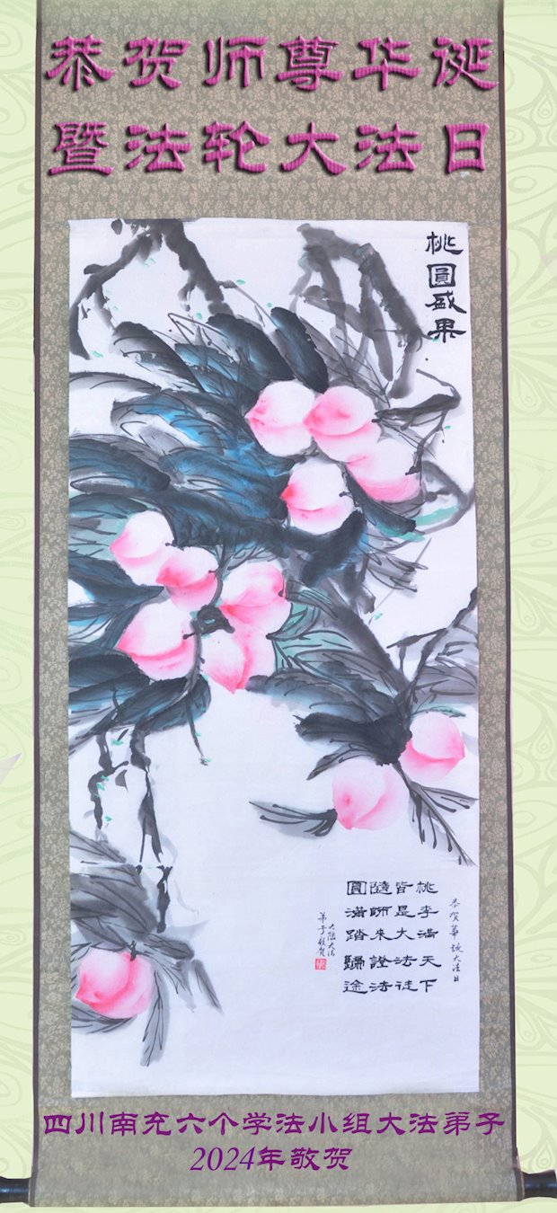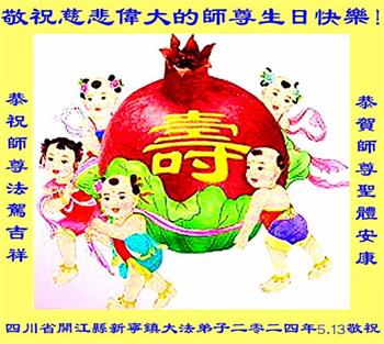 恭祝师尊生日快乐!普天同庆世界法轮大法日! 感恩师尊的慈悲救度,弟子们一定要好好修炼,做好三件事跟师父回家。 四川宜宾市全体大法弟子叩拜 二零二四年五月九日