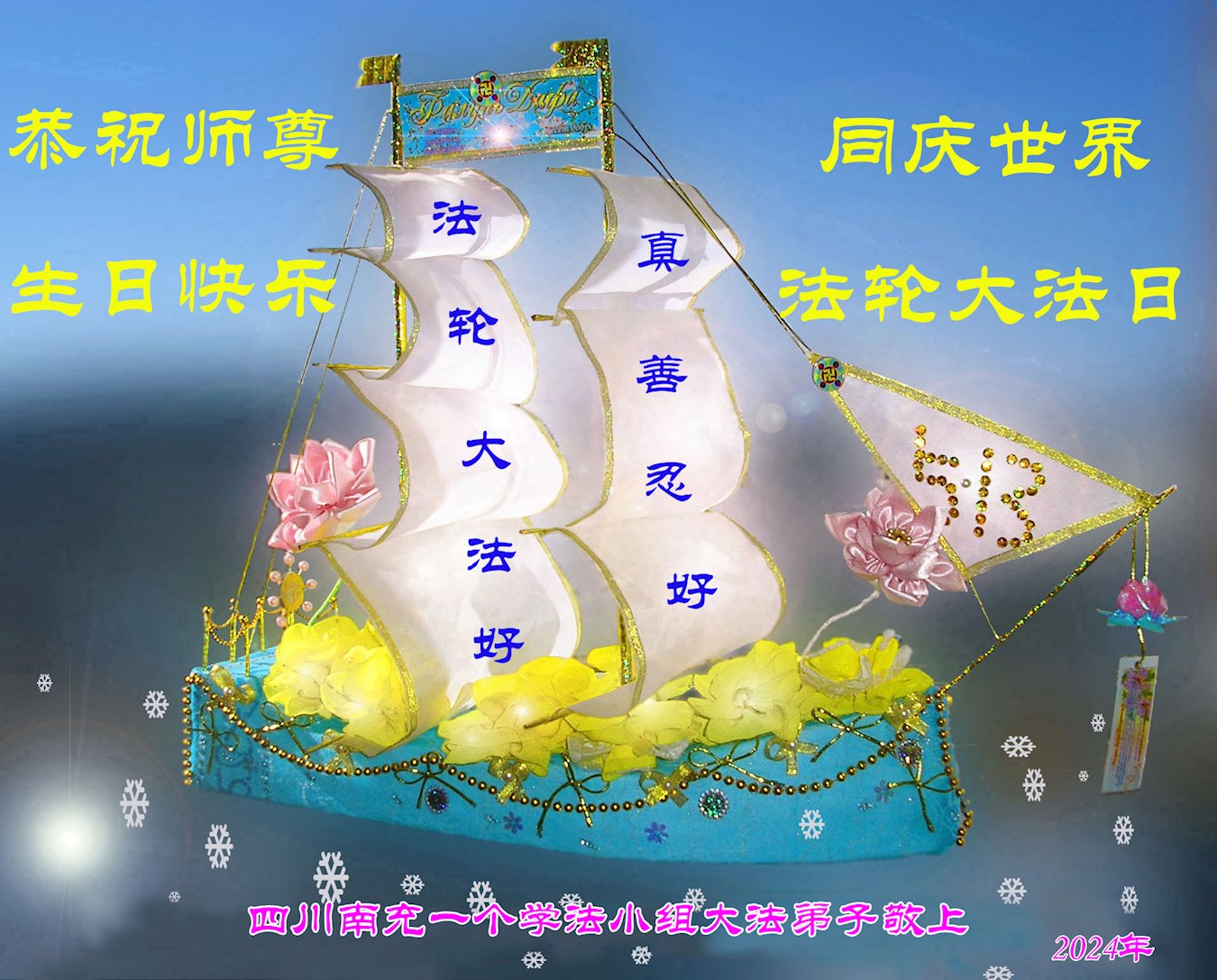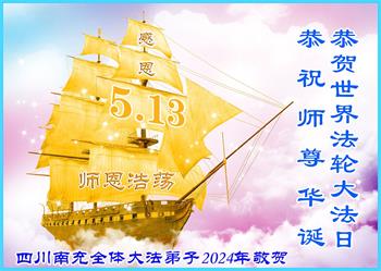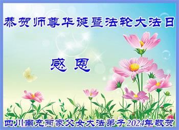 四川南充全体大法弟子2024年恭贺师尊华诞暨法轮大法日!