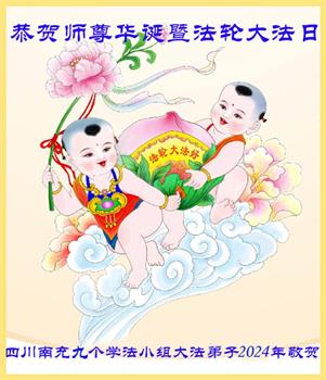 四川南充九个学法小组大法弟子恭贺师尊华诞暨世界法轮大法日!
