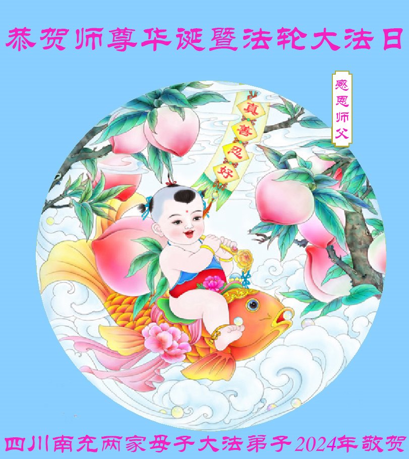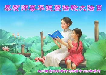 四川南充两家母子大法弟子恭贺师尊华诞暨法轮大法日!