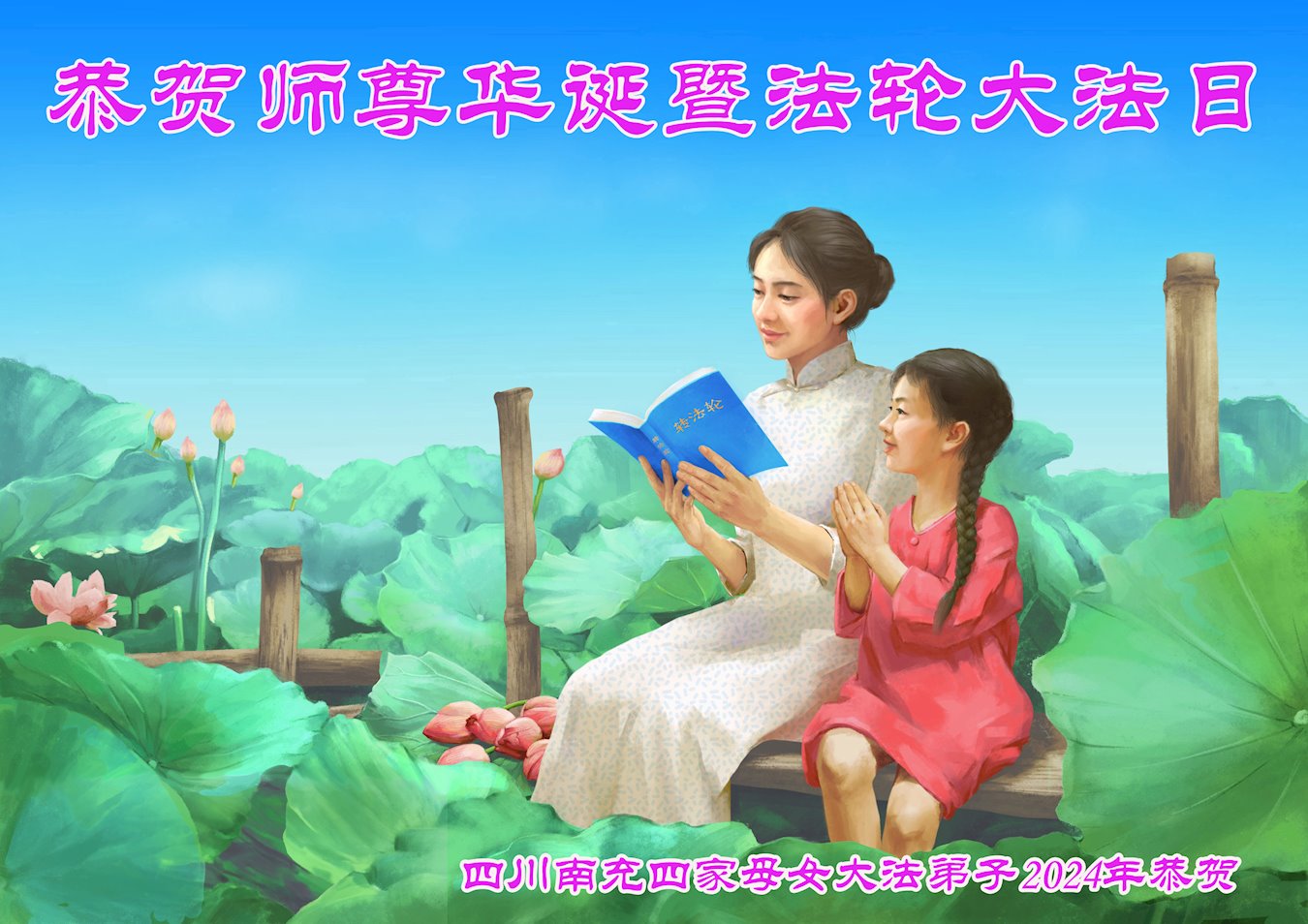 四川南充四家母女大法弟子恭贺师尊华诞暨法轮大法日!