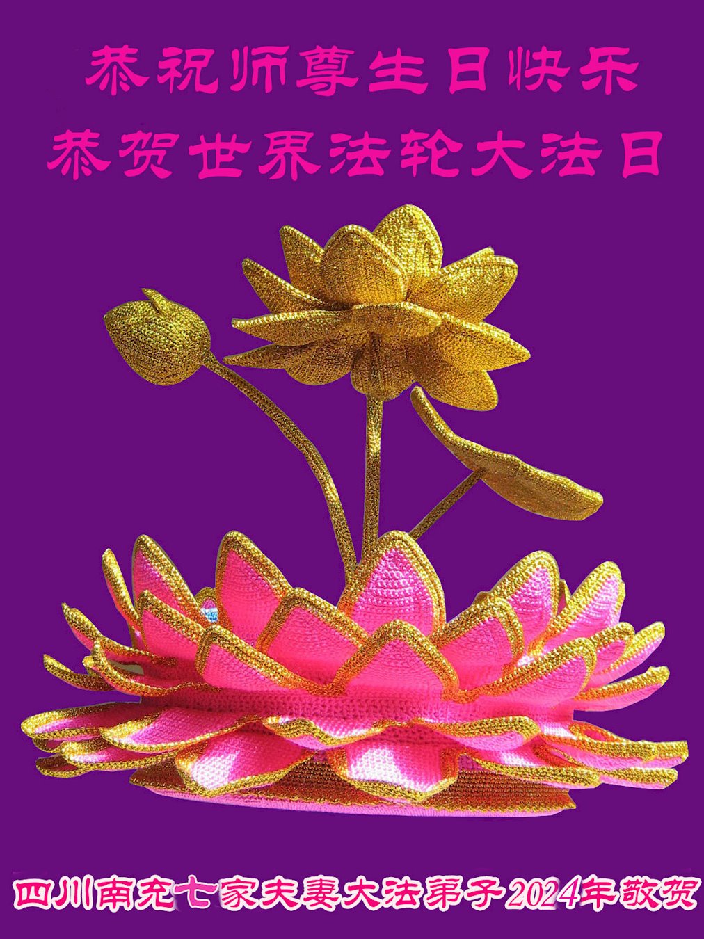 四川南充七家夫妻大法弟子恭贺师尊华诞暨世界法轮大法日!