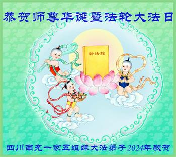 四川南充一家五姐妹大法弟子恭贺师尊华诞暨世界法轮大法日!