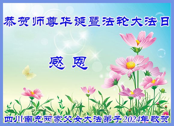 四川南充一家父女大法弟子恭贺师尊华诞暨世界法轮大法日!
