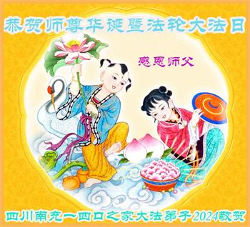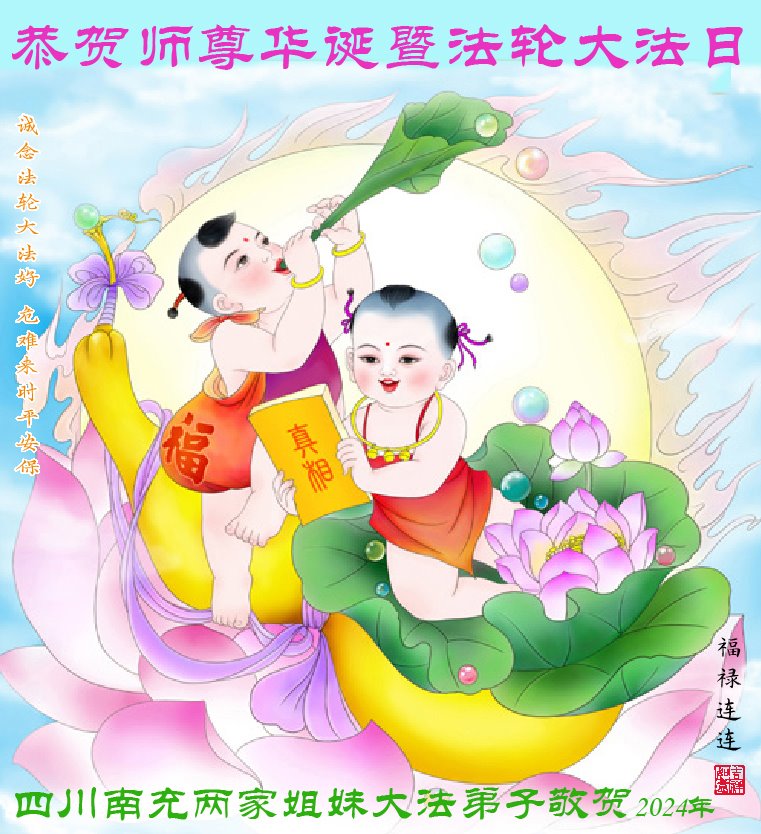 四川南充两家姐妹大法弟子恭贺师尊华诞暨世界法轮大法日!