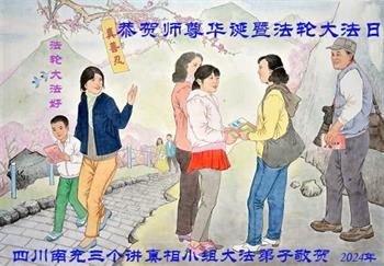 四川南充三个讲真相小组大法弟子恭贺师尊华诞暨世界法轮大法日!