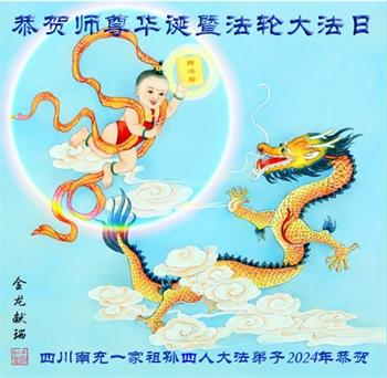 四川南充一家四口之家大法弟子恭贺师尊华诞暨世界法轮大法日!