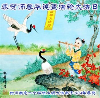 【明慧网二零二四年五月十四日】 四川南充三个学法小组大法弟子恭贺师尊华诞暨法轮大法日!