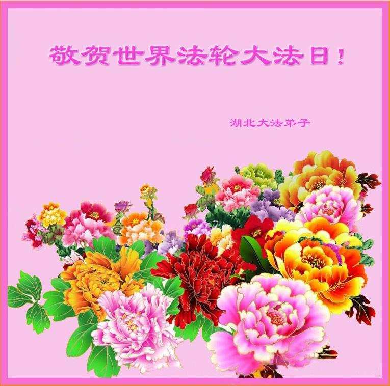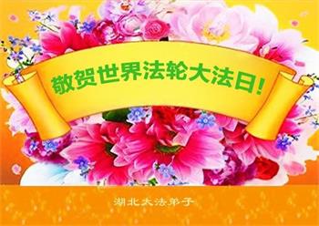 湖北省黄冈地区十一个县(市)区大法弟子恭贺世界法轮大法日!恭祝师尊生日快乐!盼师尊早日回大陆回神州大地!