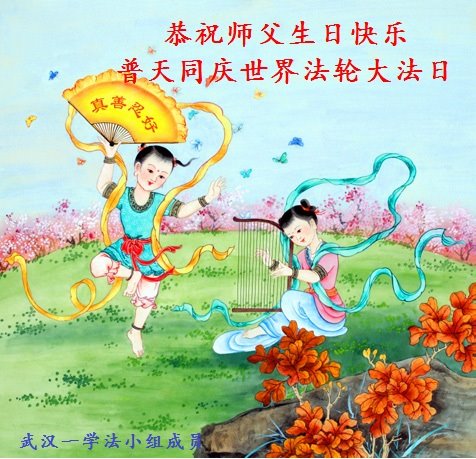 湖北省武汉市一学法小组大法弟子敬贺 湖北省大法弟子恭祝师尊生日快乐!