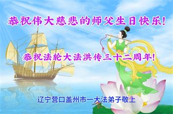 辽宁营口盖州市一大法弟子恭祝伟大慈悲的师父生日快乐!