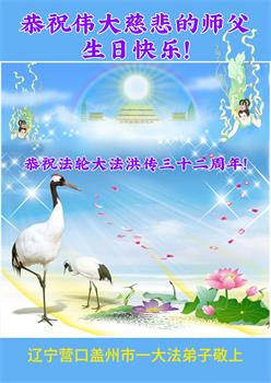 【明慧网二零二四年五月十五日】 辽宁营口盖州市一大法弟子恭祝伟大慈悲的师父生日快乐!