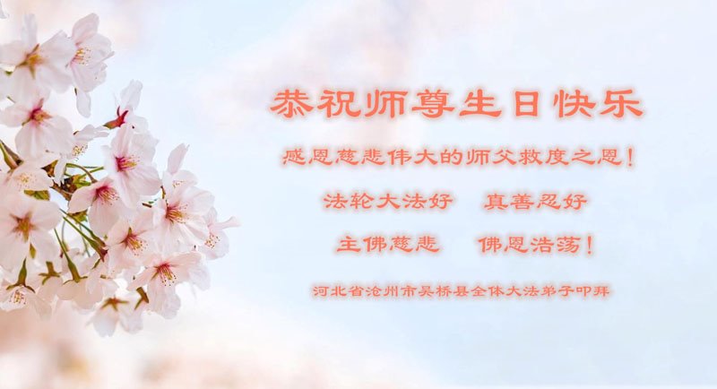 弟子一定学好法,多救人,跟师父走到最后。 河北省沧州市吴桥县全体大法弟子恭祝慈悲伟大的师尊生日快乐!