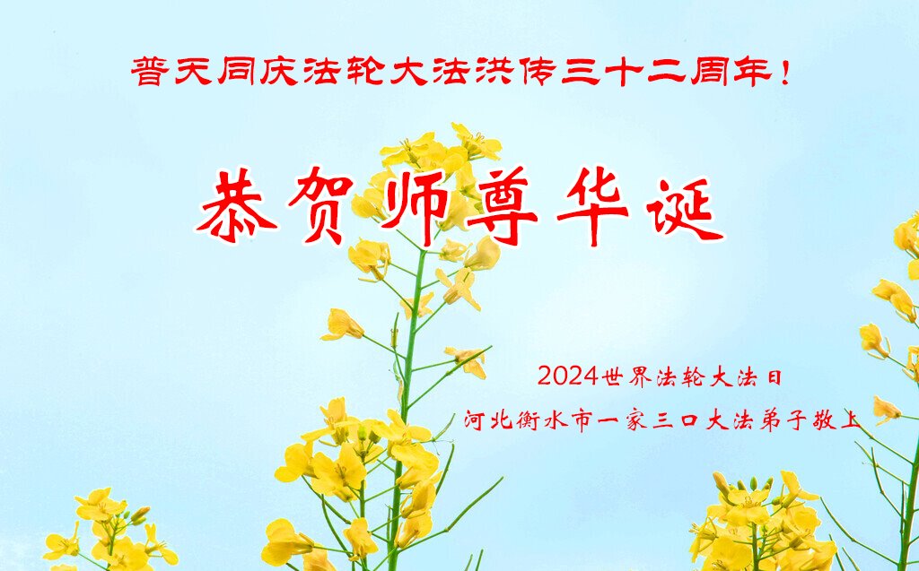 河北省大法弟子一家三口恭祝师尊生日快乐!