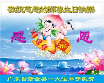 广东省河源市紫金县大法弟子恭祝师尊生日快乐!恭贺第25届世界法轮大法日!