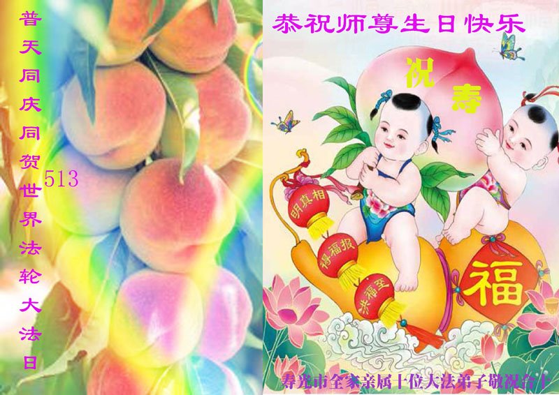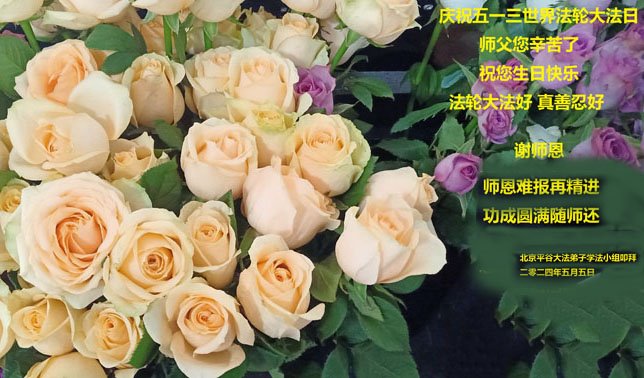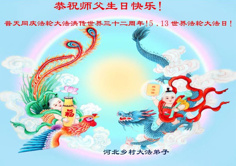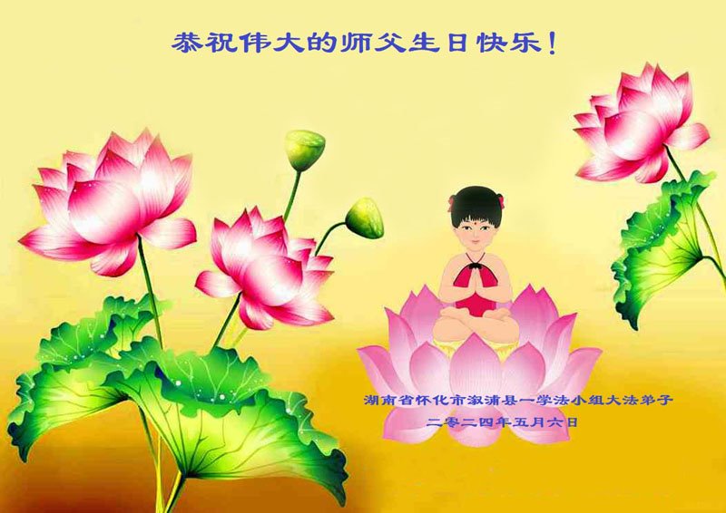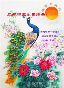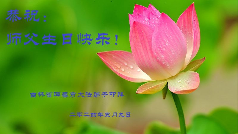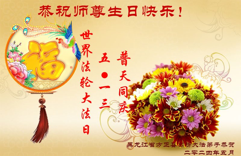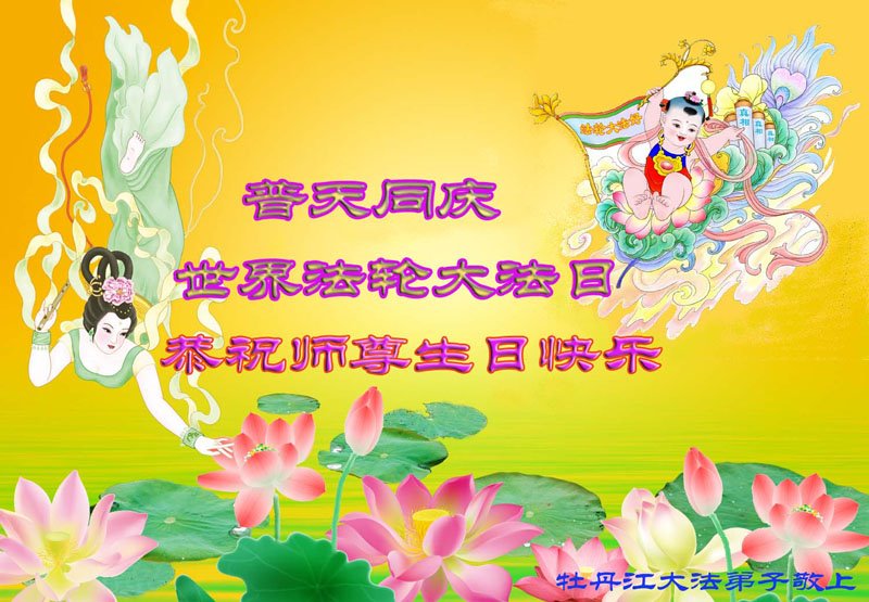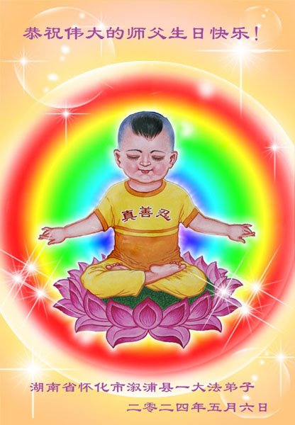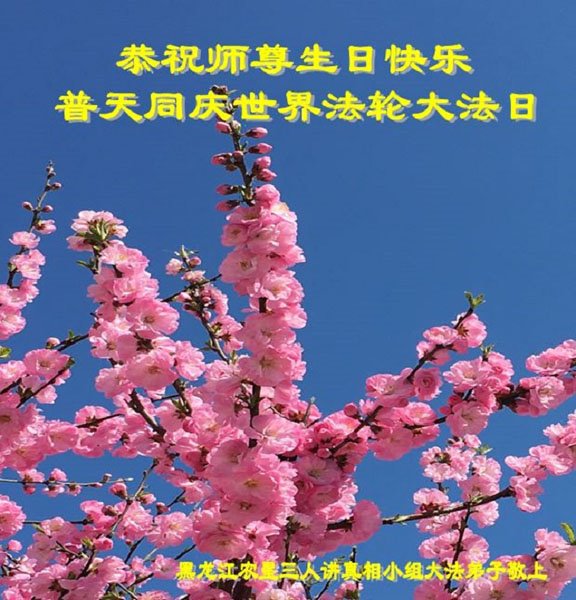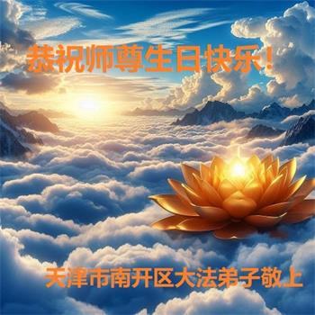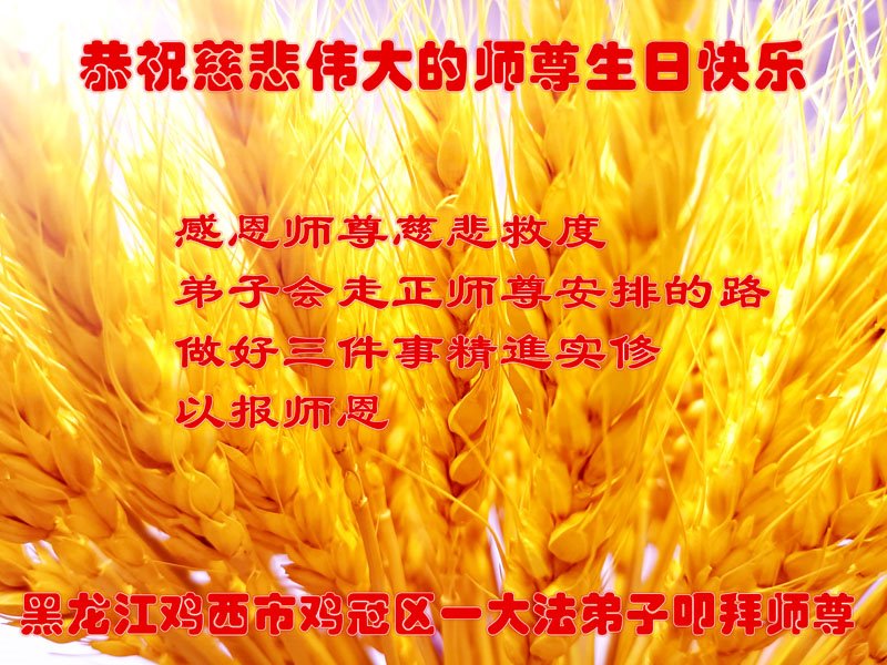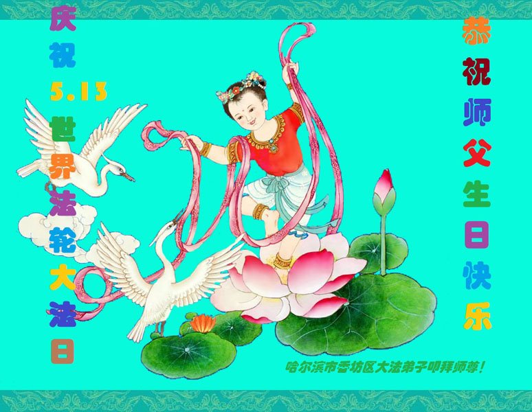 师父您慈悲救度所有众生,太辛苦了!我们对您的感恩无以言表,只有努力做好三件事,助师正法。 哈尔滨市一老年大法弟子恭祝师父生日快乐!恭贺世界法轮大法日!