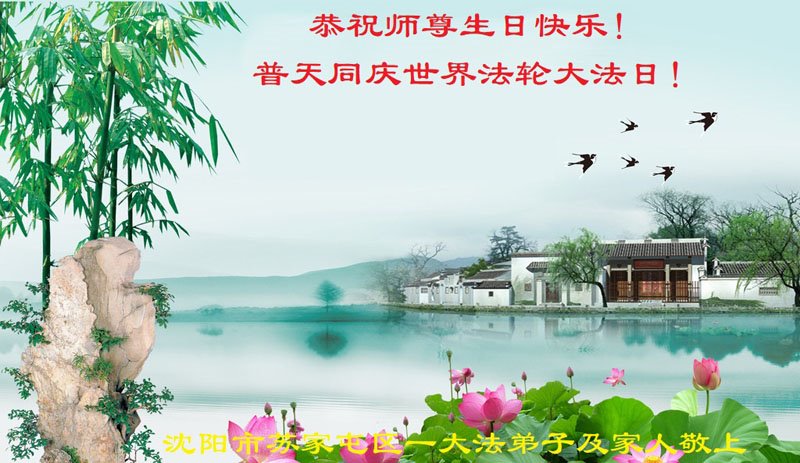 辽宁省沈阳市苏家屯区一大法弟子及家人恭祝师尊生日快乐!庆祝世界法轮大法日!