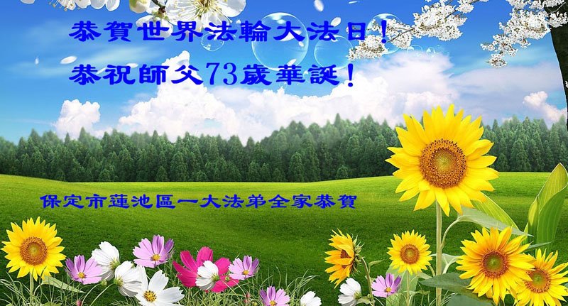 保定市莲池区一大法弟子全家恭贺世界法轮大法日暨师尊华诞!