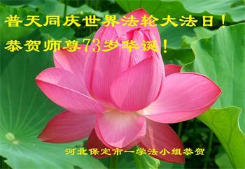 河北保定市一学法小组恭贺世界法轮大法日暨师尊华诞!