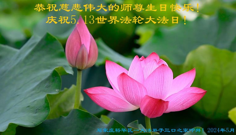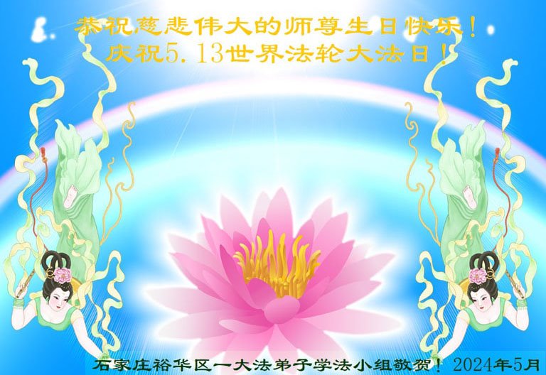 石家庄裕华区一大法弟子学法小组恭祝慈悲伟大的师尊生日快乐!
