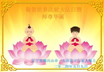 辽宁省调兵山市一大法弟子与家人敬贺世界法轮大法日暨师尊华诞!