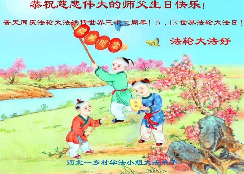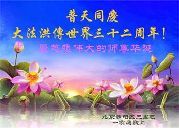 中国大陆大法弟子恭贺大法洪传三十二周年!恭祝伟大的师尊生日快乐!