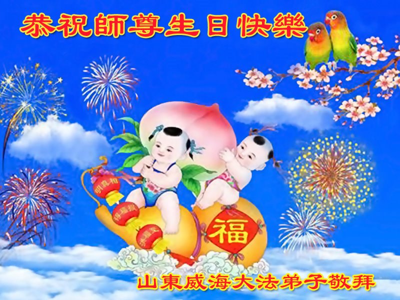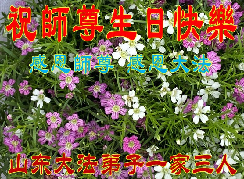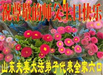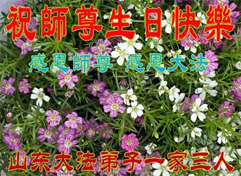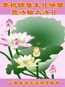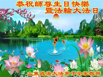 山东威海大法弟子全家恭祝师尊生日快乐!